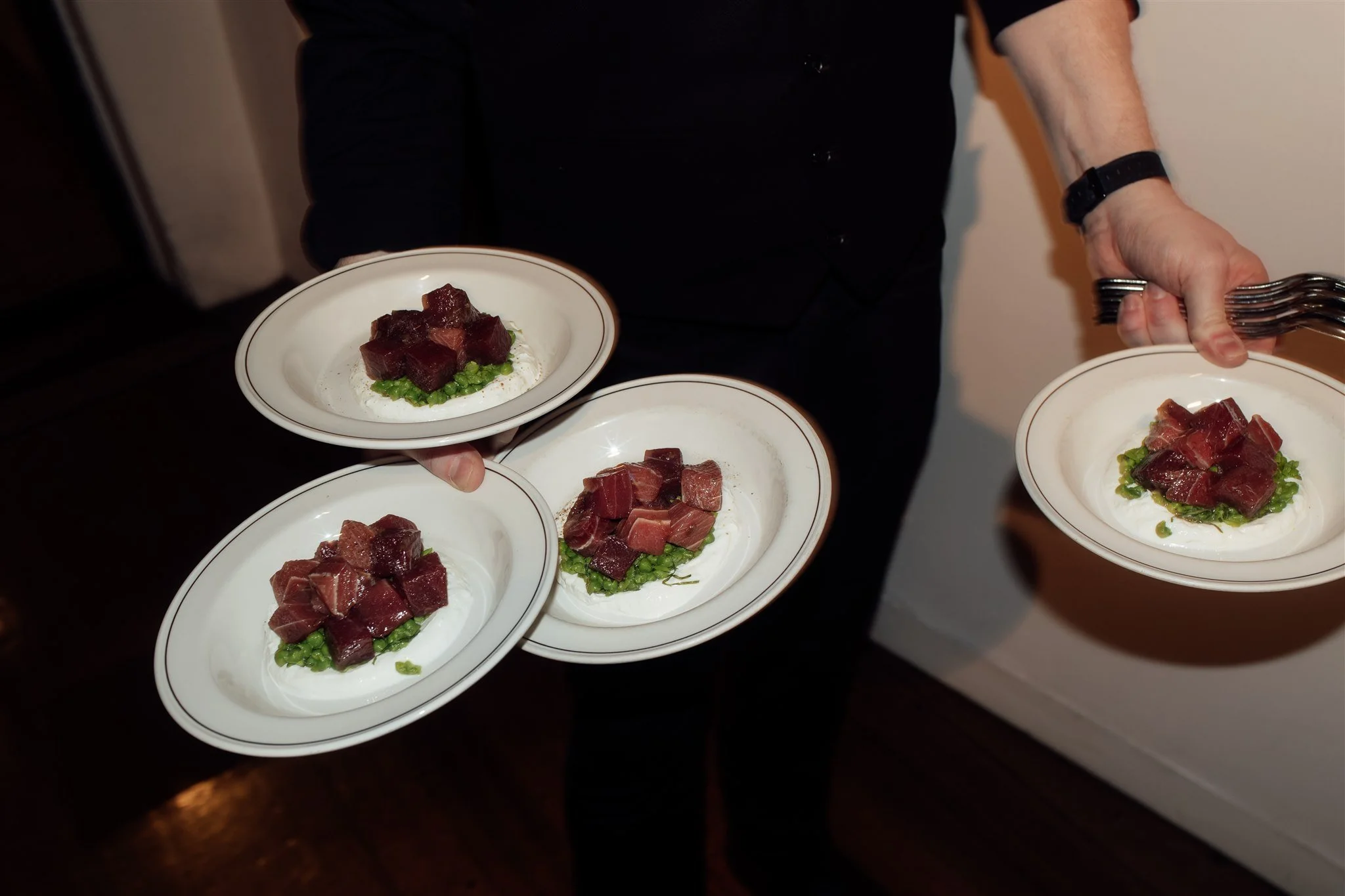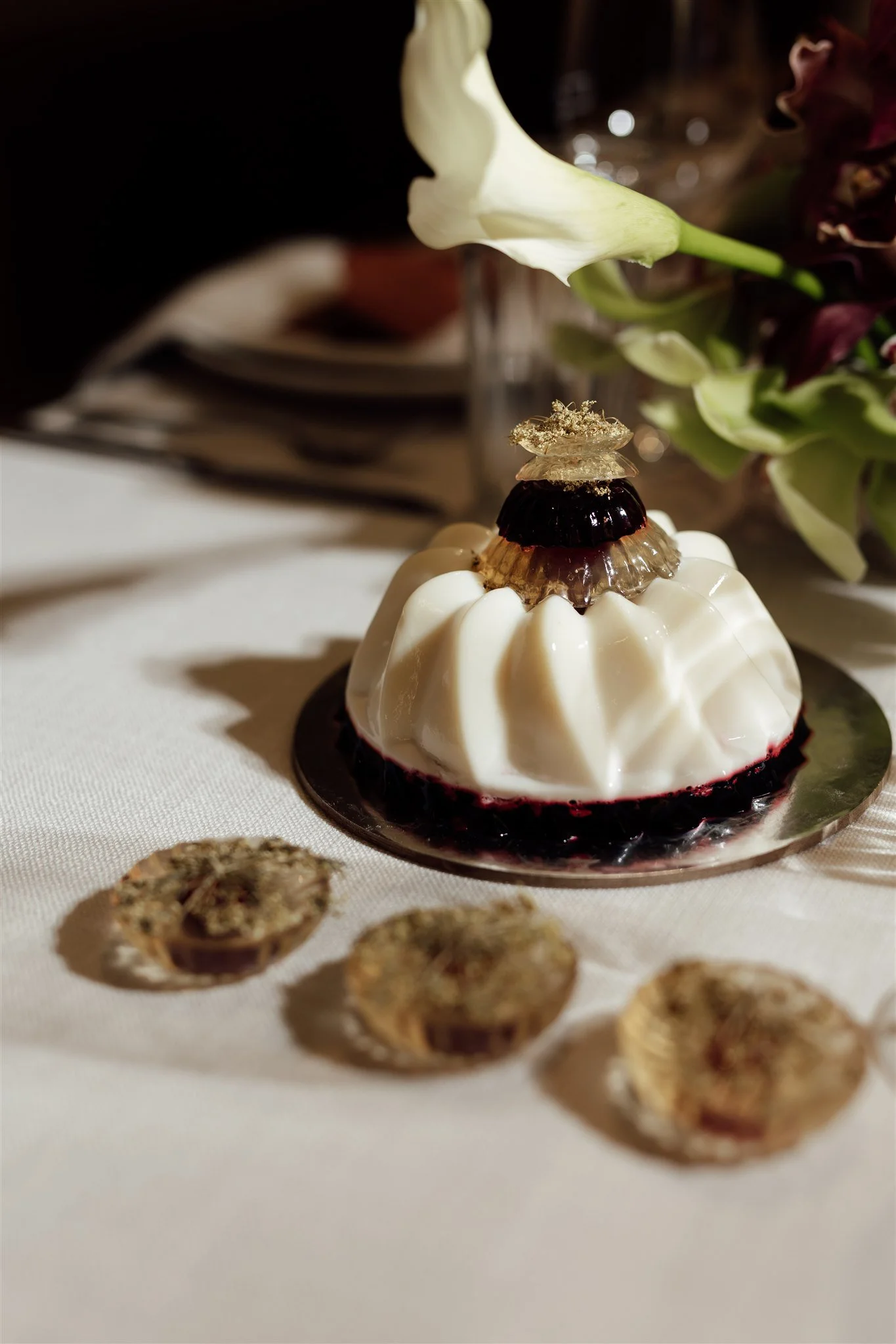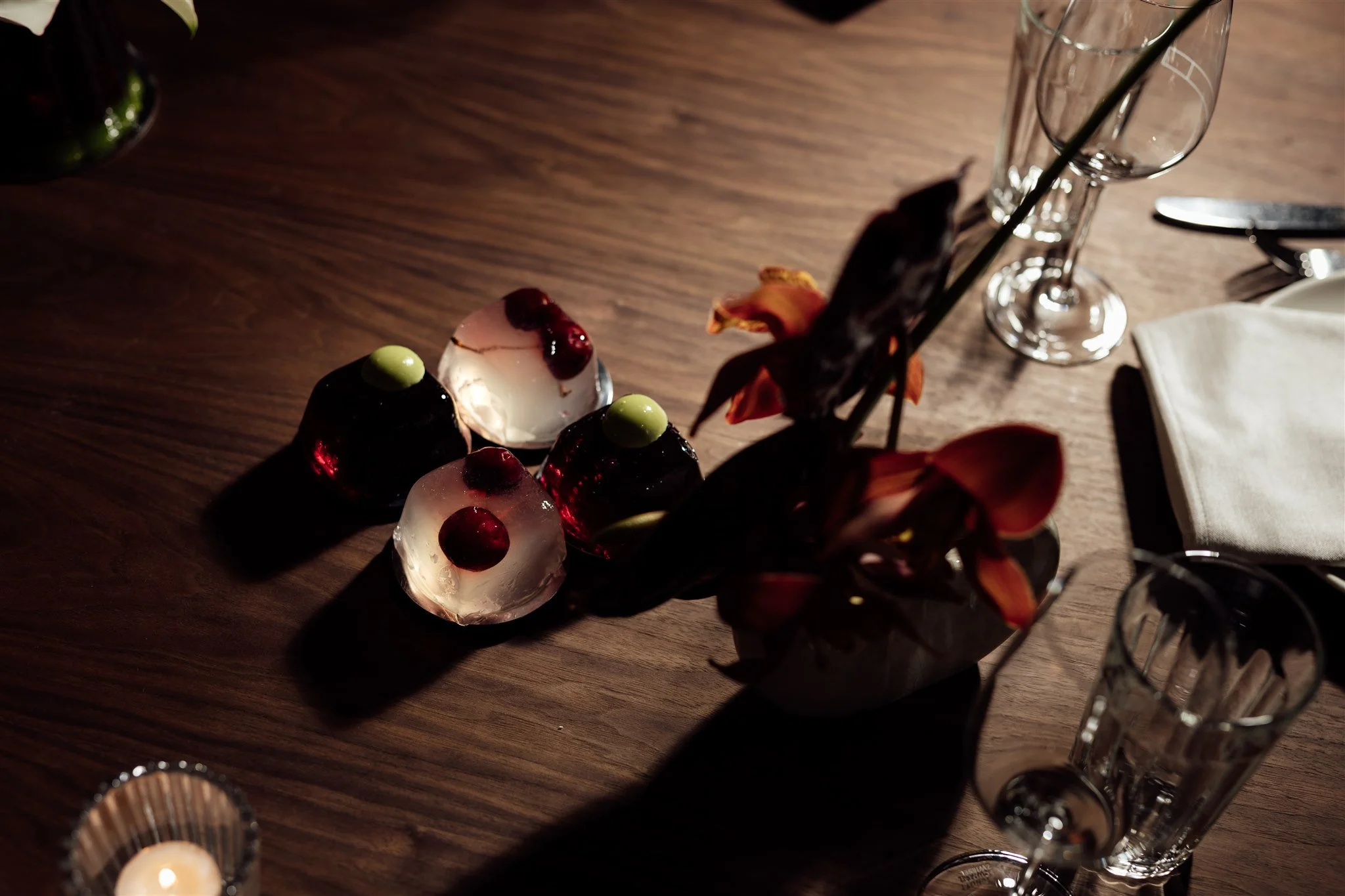 From envelope-style menus by Emclectic to subtle Pinterest-red accents and custom branding moments, every element was considered. The tablescapes were ambient and tactile — layered with thoughtful textures and mood lighting. To add an unexpected (and fun) twist, we leaned into the jelly dessert trend with beautifully styled creations by Torte by Mirjana, which quickly became a talking point of the evening.